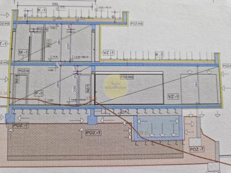 podruma:-bazen od 34m2, ( dimenzija bazena je 8.5m X4m sa infinityem), ukopana garaža za 2 auta te vinski podrum,