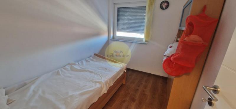 Vrlo lijepa i funkcionalna novogradnja, na drugom katu stambene zgrade, koja se sastoji od kuhinje sa blagavaonicom i dnevnog boravka, dvije sobe, od drvarnice i jednog parking mjesta te dodatne parcele od 65m2 koja pripada stanu.U kupaoni je podno grijanje na struju. Stan je klimatiziran. Sa balkona je pruža pogled na naselje i okolicu. | |       |
