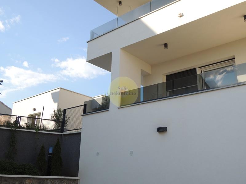 Predivan i funkcionalno namješten 3S+DB, 80m2, sa okućnicom od 400m2 i dodatnom kućicom od 38m2(1S+DB) i podrumom od 100m2. Grijanje na dizalicu topline.