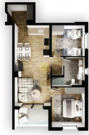 Ovaj stan nosi oznaku stan 02.-1.kat, te se sastoji od kuhinje sa blagavaonom i dnevnog boravka, dvije sobe, loggie od 6,73m2,od ulaznog hodnika i kupaonice s prozorom, te od spremišta br.12-12,19m2 i 2 parking mjesta u garaži. Ukupna kvadratura stana 84,06m2 + 25m2 dva garažna izdvojena parking mjesta.